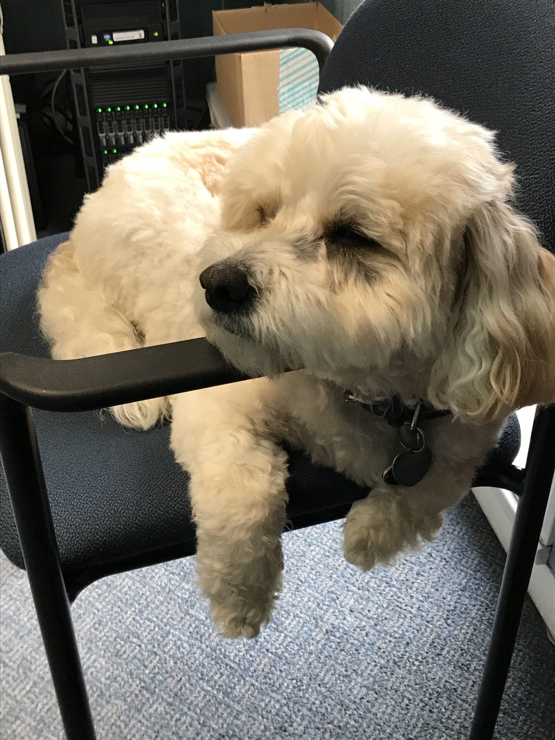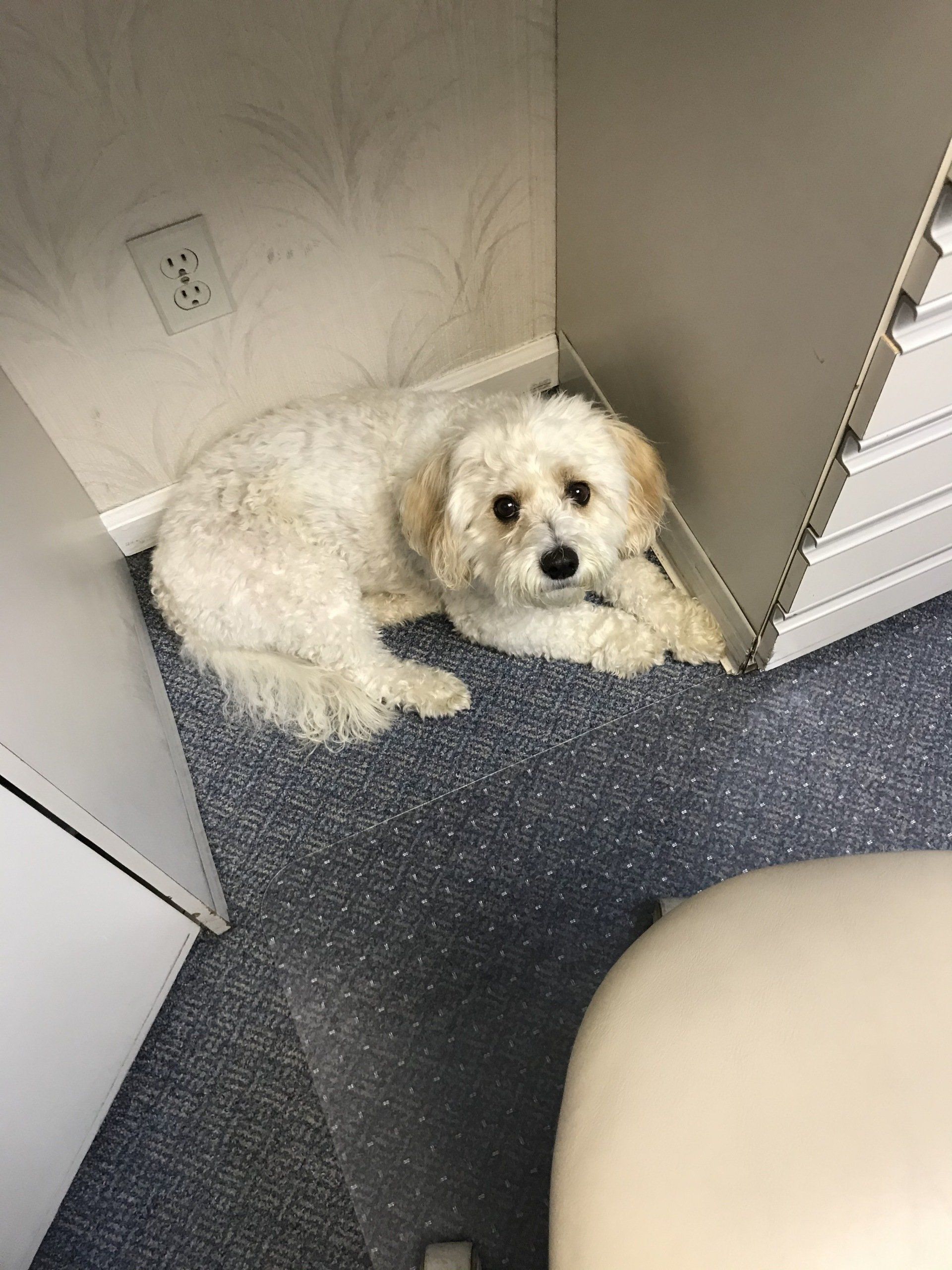 Cash, the beloved dog of Dr. Roberto and Dr. Delwo, joins them at the office daily. Whether he's peeking through the window, searching for treats, or napping in the break room, he brings comfort to everyone he meets. His presence is sure to bring a smile to your face.