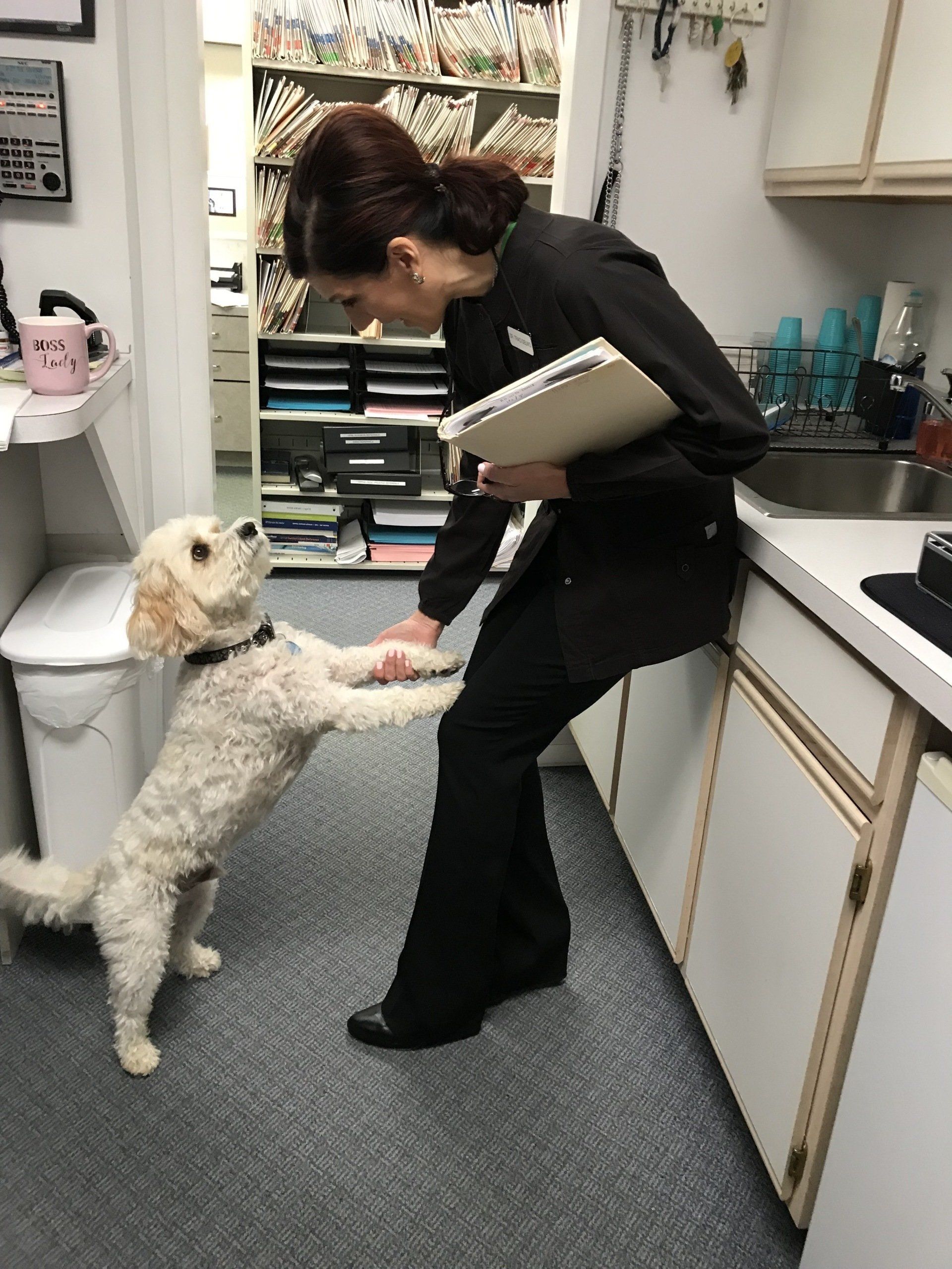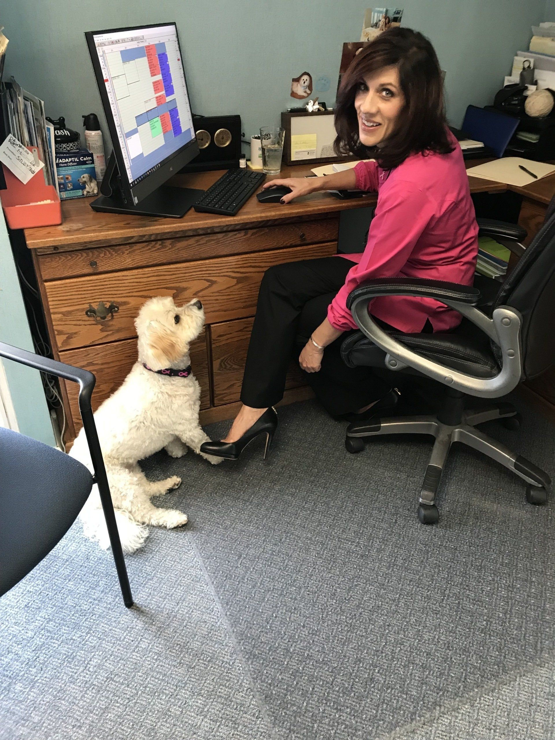 Patients often look forward to their visits, not just for the expert care they receive but also for the warm, furry greeting from Cash.